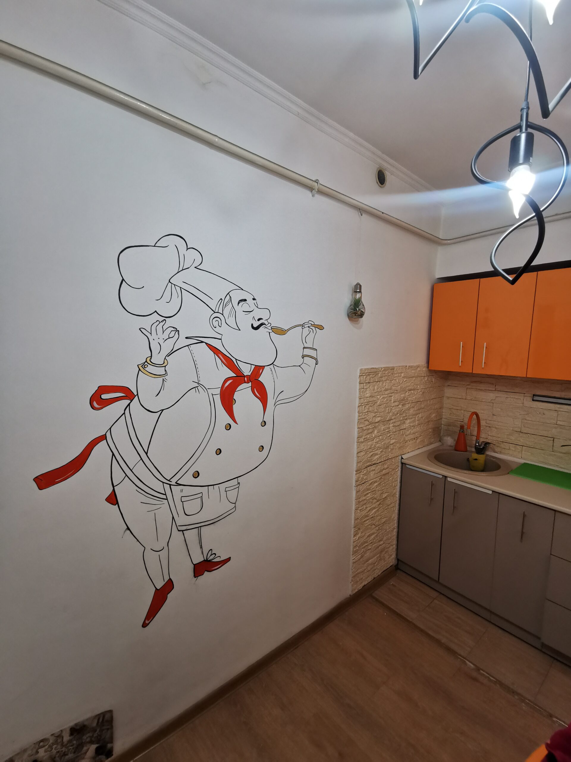 Шикарный свежий ремонт с авторскими росписями на стене. левкас, ламинат, двери межкомнатные дерево, новые счетчики на воду, встроенные шкафы, гардеробная. Сантехника новая, санузел раздельный, кафель, домофон. Все комнаты раздельные. Кухня и гардеробная остаются в квартире! Ремонт делался с любовью и для себя! продается в связи с переездом.